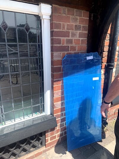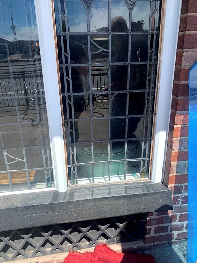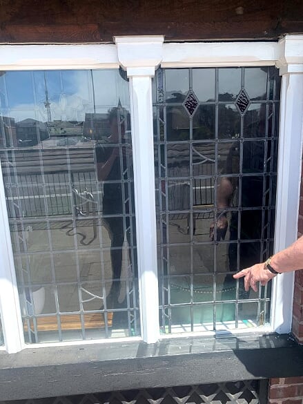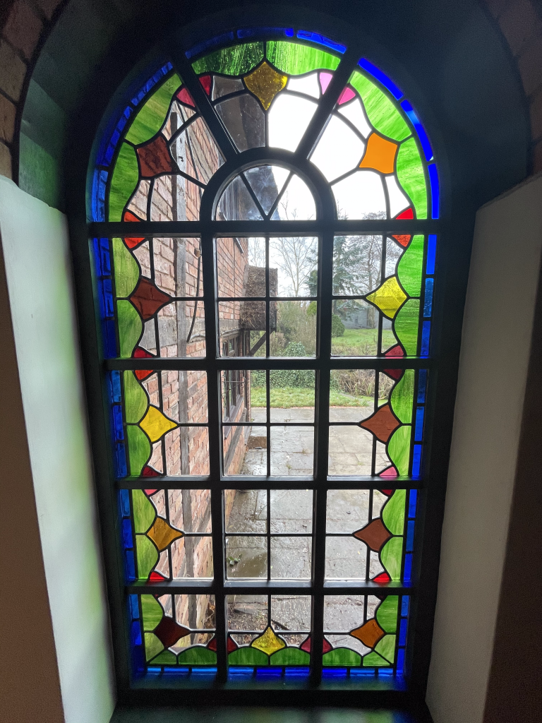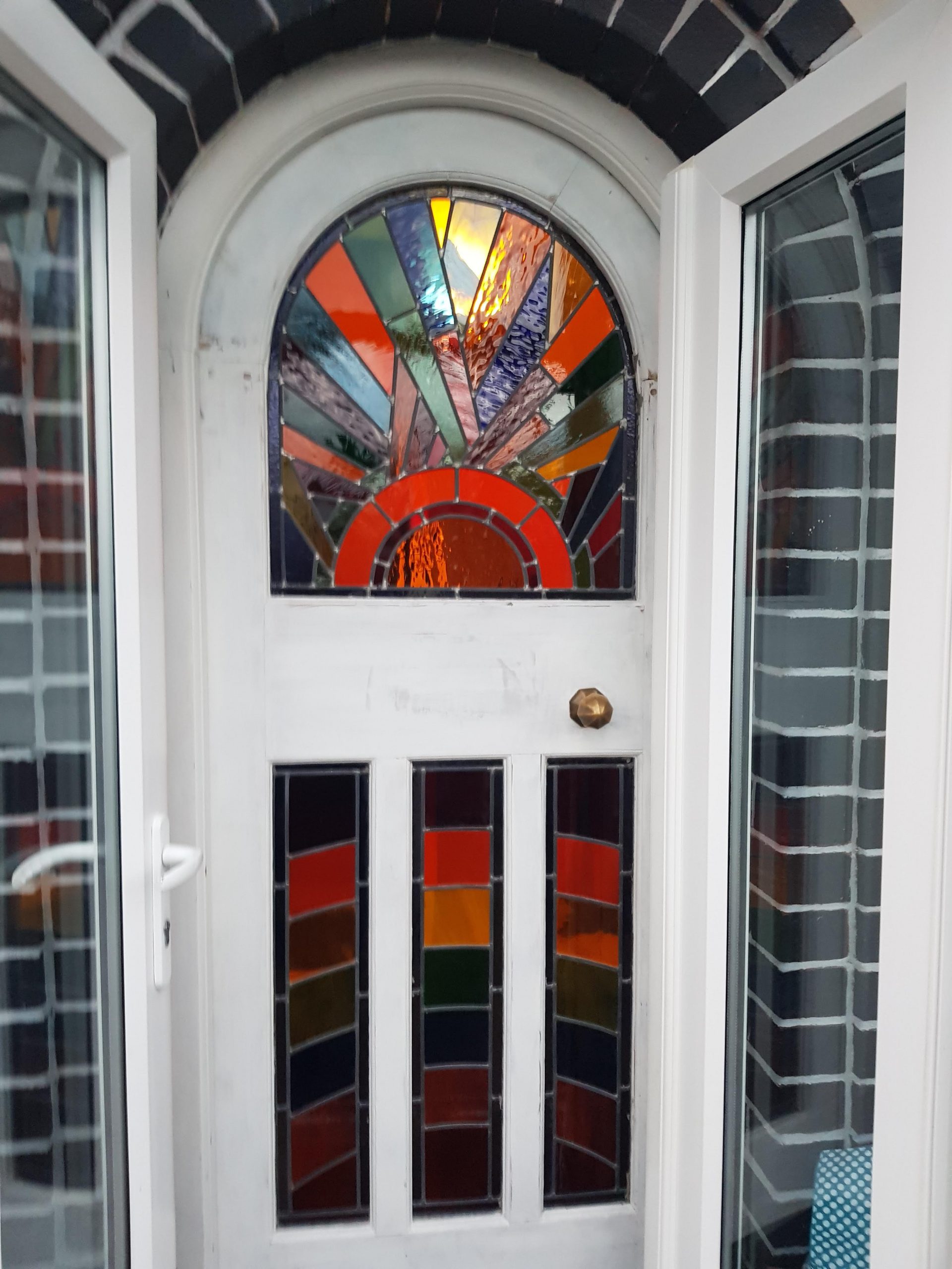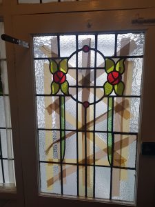 Winsome reached out to us via Facebook regarding her window being extremely weakened and a few cracks in the glass, we came to the rescue and managed to take out the window in one piece, boarded the door up, stripped the window down and cleaned all the glass; we then replaced the cracked pieces and leaded the window back up, then refitted the window later on that week also adding a metal bar for support. We are glad you are pleased